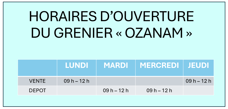 Attention : Merci de ne rien déposer en dehors des heures d’ouverture.